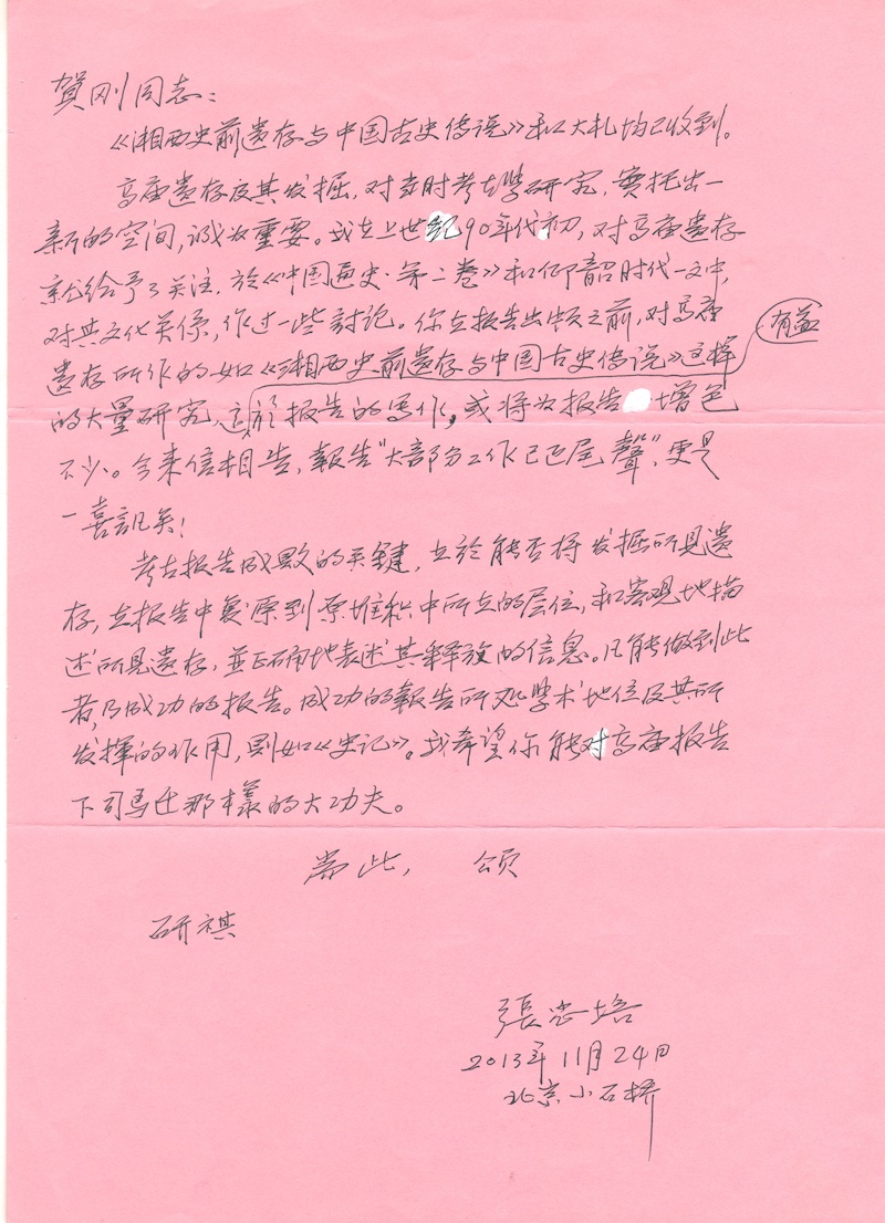 高庙遗存及其发掘,对当时考古学研究。实托出一新空间,诚为重要。我在上世纪90年代初,对高庙遗存就给予了关注。于《中国通史.第二卷》和仰韶时代一文中,对其文化关系,作过一些讨论。你在报告出版前,对高庙遗存所作的如《湘西史前遗址与中国古史传说》这样的大量研究,这有益于报告的写作,或将为报告增色不少。今来信相告,报告“大部分工作已尽尾声”,更是一喜讯矣!