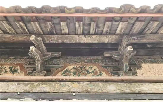 大殿坐北向南,面积88平方米,木结构悬山式屋顶。前檐下施斗拱8朵。抬梁式梁架,8架椽屋前后乳袱搭牵用4柱。面阔三间11米,进深三间8.1米,通高6.5米。殿堂后靠东边的穿坊上有“成化五年”题记,殿堂前靠西穿坊上有明“隆庆(1567-1572)”年号。根据2017年调查,屋内额有题记:“大明洪武二拾三年建立……天順五年……重修”。东西两面排列用竹编夹泥墙,彩绘十八罗汉图;前檐斗拱之间尚存5幅彩绘图画,内容均为神话故事,其中有一幅为孙悟空三打白骨精。彩绘均已模糊不清。