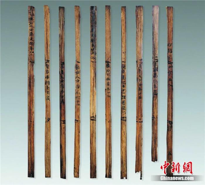 还有被称为“嘉禾吏民田家莂”的木片。它们长约50厘米、宽2.6至5.5厘米不等,是记录租种土地缴纳田赋的木牍。记载了孙吴长沙郡临湘县佃户租佃土地的数量及须向官府缴纳钱粮、布匹等赋税的数额,以及对弱势群体的优惠政策。