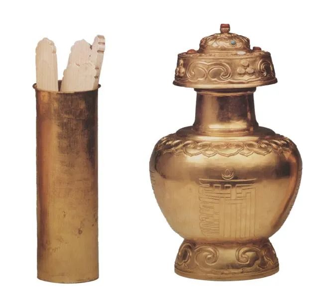 清代金奔巴瓶、签牌。