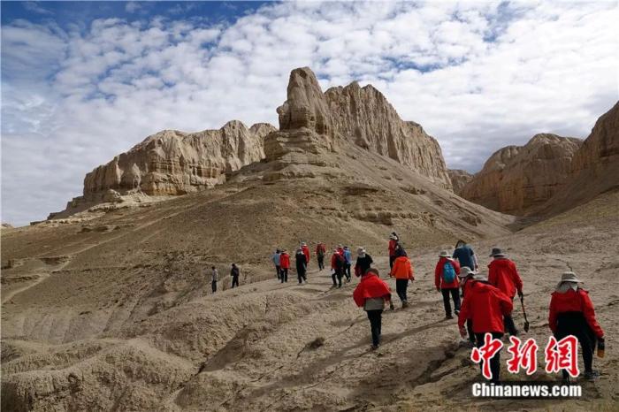 西藏自治区阿里地区札达县,执行2022年夏季科考任务的中国第二次青藏高原综合科学考察研究(青藏科考)“人类活动历史及其影响”分队在海拔约3900米的格布赛鲁遗址开展综合科学考察。孙自法 摄