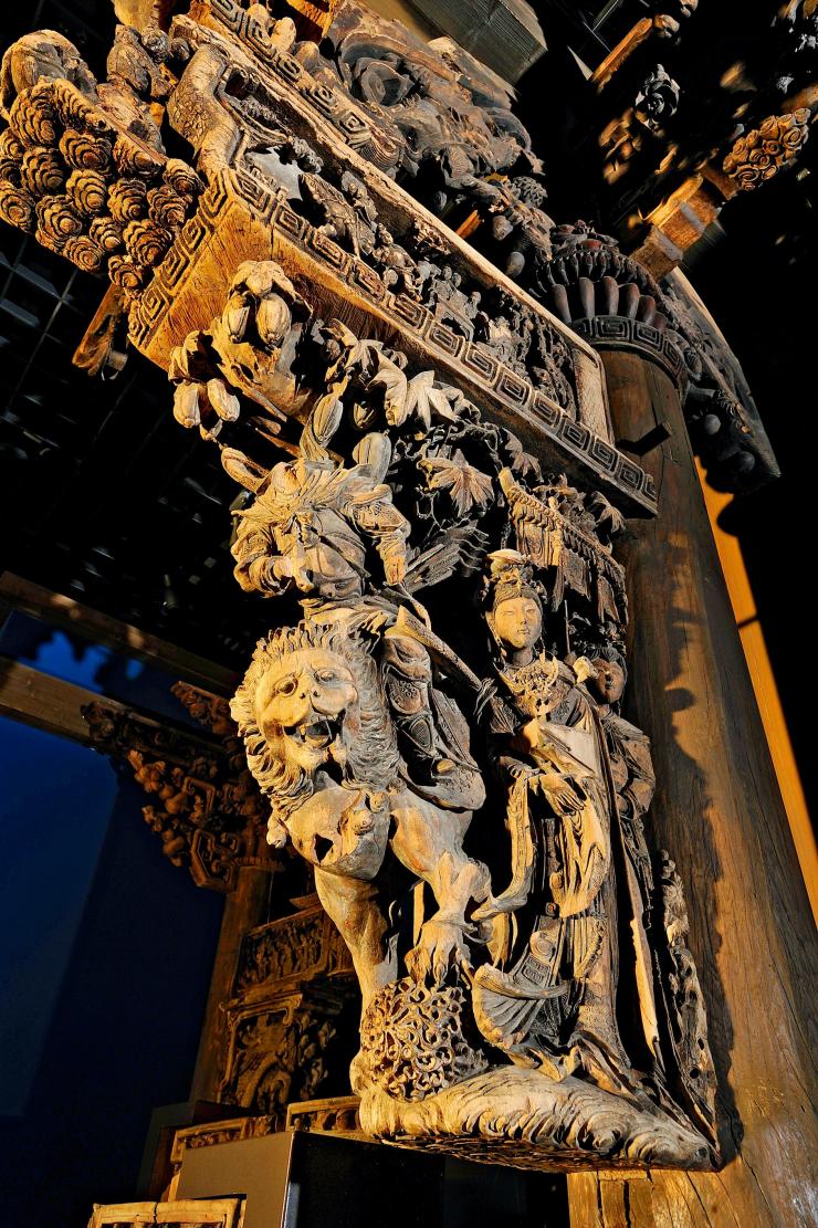 图为一件东阳木雕牛腿。一组栩栩如生的瑞兽、人物、花木,聚集在一件小小的牛腿上,饱满而不杂乱,显示出了高超的构思和刀法。流转的线条,吉祥的寓意,都充满了东方艺术的神韵。由此可见,长期以来为人忽视的中国雕刻艺术,与西方相比也并不逊色。