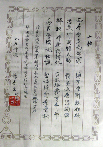 谢辰生自写的七律言志诗。 新华网 前卫 摄