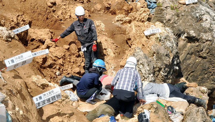 | Раскопки обрушившейся пещеры Ширахо-Саонетабару на острове Ишигаки (Япония). |