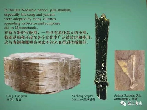 反观中国同时期的象征载体——从新石器晚期的红山文化、良渚文化到之后的商周时期,经历了陶塑、玉器纹样、青铜铭文等不同阶段,这与西亚所习用的三维人像或二维图像完全不同。新石器时代晚期,玉琮、玉牙璋等器物在各文化中被广泛效仿、传播,揭示了当时存在的重要的区域联系。