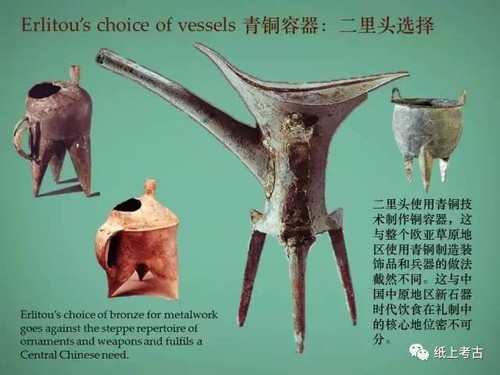 二里头遗址是不得不提的重要节点,这一时期的重要现象是青铜技术和成品从西北和北方传入,青铜器迅速发展,但从使用、技术、原料三方面可以归纳出三个网络:贵族墓葬中一致的随葬方式所反映的家族网络,擅长陶范与铅青铜制作反映的技术网络,铜、锡、铅原料反映的资源网络。青铜容器的铸造意味着对巨大人力物力的组织。