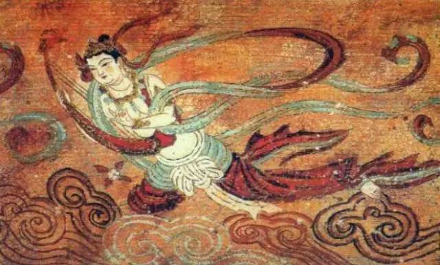 人们只要看到优美的飞天,就会想到敦煌莫高窟艺术。敦煌莫高窟492个洞窟中,几乎窟窟画有飞天。飞天,出自古老印度神话,据佛经记载,为乾闼婆和紧那罗二神的衍变。乾闼婆,梵文Gandharva的音译,意译为天歌神。由于她周身散发香气,又叫香音神。紧那罗也是梵文Kipnara的音译,意译为天乐神。乾闼婆和紧那罗原来是印度古神话和婆罗门教中的娱乐神和歌舞神。神话传说中说他们一个善歌,一个善舞,形影不离,融洽和谐,是恩爱的夫妻。后来被佛教吸收,化为天龙八部众神中的两位天神。飞天传入中国后,在中国文化土壤上,经过嫁接、开花、结果,最终形成自己独特风格。其中以敦煌壁画中的飞天最为著名,它成为敦煌艺术的标志和象征。