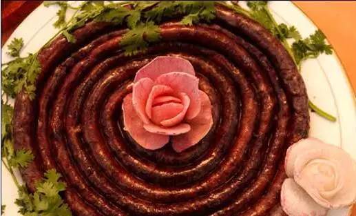 肠脂裹的做法是,把羊肠翻洗干净后,将羊的下水和血块等剁碎,加佐料和适量炒面,搅拌成糊状,装入肠内,两头扎紧,水开后入锅煎煮,煮时要适时地用针在肠壁上扎眼儿放气,以免崩裂,稍凉后切片即食。