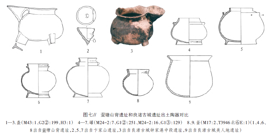 塘山背较为常见,是具有本地特色的一类炊器,良渚古城美人地第一期遗存也有素面陶釜(图七︰8、9),应该也是这种反馈的体现。