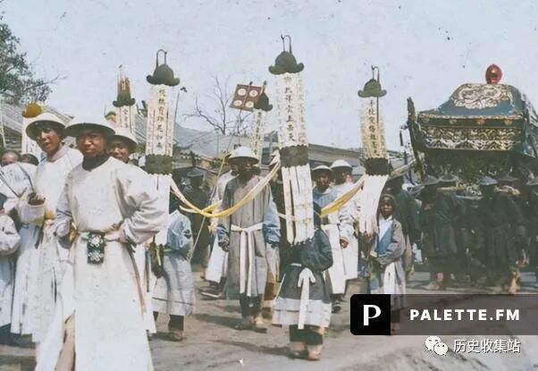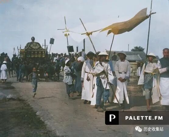 清末彩色老照片:庄重的葬礼;俯瞰京城;火车驶过崇文门;河北农村市场卖瓜果蔬菜原创 历史收集站 历史收集站 2023年12月12日 00:00 四川在清末京城中,一场庄重而肃穆的葬礼正在展开。街头巷尾,人群中弥漫着悲戚与沉重。死者的家庭地位显赫,从送葬的阵势中便可见一斑。那精美的棺罩,繁复的纹饰,尽显其高贵与荣耀。它不是一般人家能够随意负担得起的,而是家族地位和财富的象征。