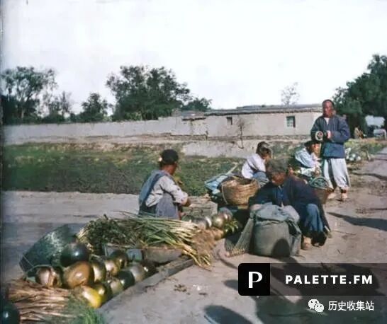清朝末年,河北的一个农村市场上,农民们纷纷在村头摆摊卖青菜,一捆捆的葱花和时令的西瓜摆满了摊位。