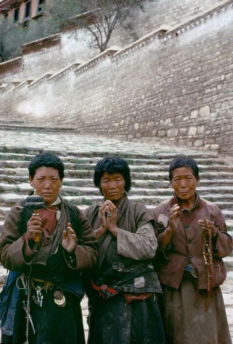 1979年,西藏拉萨布达拉宫前的三个女信众。
