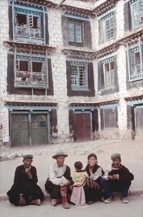 1979年,西藏藏式民居前的一家人。