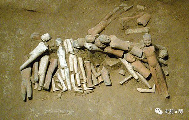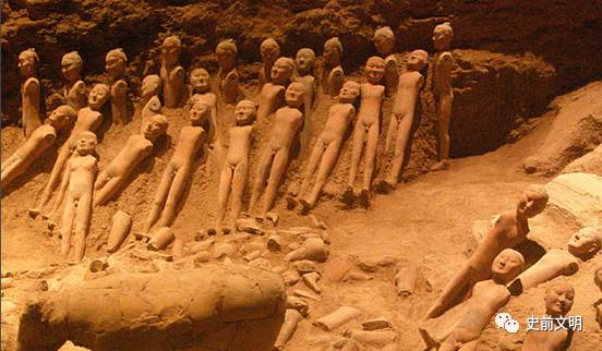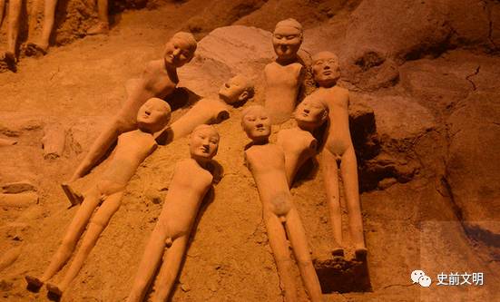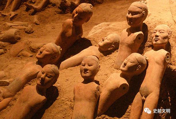 阳陵出土的汉俑十分引人注意。他们只有真人的三分之一大小,约60厘米高,赤身裸体且没有双臂。据研究,这些陶俑在刚刚完工时都身着各色美丽的服饰,胳膊为木制,插入陶俑肩部的圆孔,以便木胳膊可以灵活转动,但经过千年的风霜之后,衣服与木胳膊都已腐朽,因此只剩下了裸露而残缺的身躯。