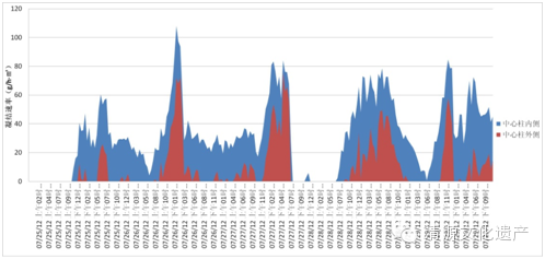 在可能出现凝结的时段中,由于洞窟内各项参数的不同,凝结的速度即凝结量也不同。为进一步分析凝结时段的凝结量,对其中一段凝结时段进行凝结量估算: