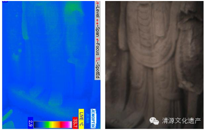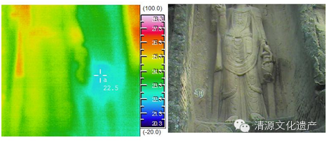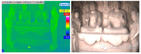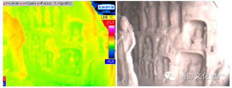 而在窟龛内部的表面温度上也同样反映出类似的规律,于以下几张红外照片中便可见一斑: