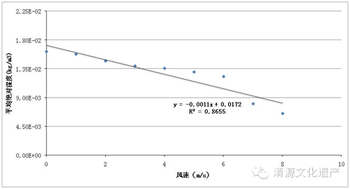 风裹挟着细小颗粒如砂纸一般不停磨蚀着千佛崖的石刻。但是如果单纯阻止风进入石窟区域,却会导致千佛崖整体湿度的上升。下图是监测过程中不同风速区段所对应的空气绝对湿度(全年平均值):