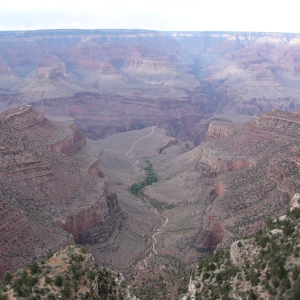 站在岸边,谷地深处的科罗拉多河的涓涓细流,几乎遥不可见,难以想象这细小黄水是这大峡谷的主要创造者。上游的多座水坝使来水减少,不过,滴水尚可穿石,足见此河年代的久远。峡壁上的岩石分层完整清晰,是研究地壳形成的活标本,是了解地质知识乃至了解地球的生动课堂。大峡谷国家公园充分利用此优势,在公园内介绍景点的解说牌和旅游手册中,着重传播科学知识,并画出游人所站地点所看到的岩层的剖面图,一一标出不同岩层的名称、特点和形成年代以及为什么会出现这些特定的形状和颜色。