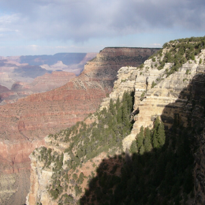 许多人认为大峡谷北岸风光更佳,因为它的海拔比南岸更高(近3000米),且景点分散,路途较远,游人只有南岸的1/4,每年的五月到十月中开放,没有公交车和旅游车,只得自己开车去,而南岸则全年开放。北岸穿过KAITAB国家森林,完全是北欧的森林草原风光,雨量充沛,年平均降雨量约660毫米。南岸也有片森林,但这里年均降雨量仅400毫米,所以不是北岸那种喜阴的冷杉,而是耐旱的松柏,矮矮的,匍伏在干涸的石山上。无论南北岸,视野都极为开阔,可看到大地起伏、断裂和切割。居高临下,常有种如俯瞰沙盘的错觉,更令人产生一览众山小的豪情。