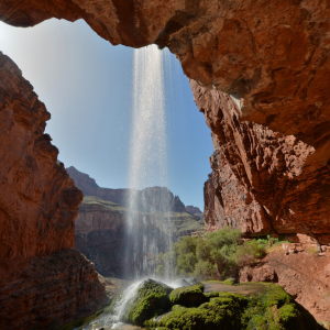 大峡谷峭立的壮观美景,感动了每一个人,而在它浩翰与辽阔之下,更隐藏着容易忽略的迷人的细致部分。站在峡谷边缘,凝视大峡谷无垠的宽广,会给人一种平静与空旷的感觉。如果时间充裕,如果你能像鸟一样飞翔,就能在这里的数百万个裂缝与隙洞中,发掘出许多让人心痒难耐的故事。大峡谷是个侵蚀的典型案例,在科罗拉多河与其他侵蚀力量所切割的深岩层中,透露了20多亿年的地质历史。夏季短暂而强烈的暴风雨,让带有红泥水的小溪流奔流下山坡,以一种小小的模式演示了连续不断造成峡谷的过程。还有其他的水源隐藏在这片荒原,比如峡谷旁寿命短暂的细流、涌出的泉水以及宁谧的渗水。