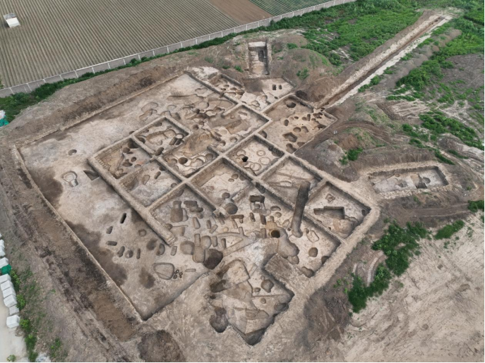河南省周口市太康县刘庄遗址位于周口市太康县张集镇刘庄村。2023年9月~10月,为配合“引江济淮”项目工程基本建设,周口市文物勘探队对其进行了考古勘探,结果显示刘庄遗址是一处高出周边地面的新石器至元明的遗址,遗址总面积约80000平方米,其中核心区为一堌堆形高台地。2023年10月,河南省文物考古研究院联合周口市文物保护和考古研究中心、周口市文物勘探队对遗址进行发掘,发掘面积为500平方米。在发掘的遗迹中,5座瓮棺葬、4座灰坑、1条灰沟、2段夯土墙和1座房基为龙山晚期,其他皆为东周、汉代以后的遗存。本次发掘的重要收获即龙山时期的遗存,其中重要的遗迹有:夯土墙:在遗迹的南部和东部发现2段夯土墙,呈东西向分布。勘探后发现夯土城墙对早期勘探出的遗址核心区进行了合围,合围形状为近方形,同时在城墙外围发现城壕遗迹。房基遗迹:目前仅揭露1座房基,编号为F2,由两段东西向的墙基,两段南北向的墙,以及墙体倒塌堆积组成。出土的典型遗物有龙山时期的灰陶器、商周时期的卜骨、鬲足,夹杂蚌粉,陶器器形多见器盖、深腹罐、小口高领壶、甗、刻槽盆、豆和碗等,纹饰多为篮纹、方格纹、菱形方格纹、绳纹和刻划纹等。刘庄遗址中夯土城墙的封闭性、城壕的发现以及多层房屋堆积的揭露,对于研究刘庄遗址与时庄遗址的关系,豫东地区龙山晚期的小型城址的发展、城市网、找寻豫东地区龙山大型城址及夏文化均具有重大意义。