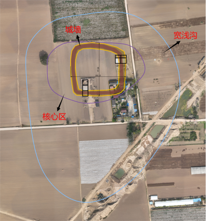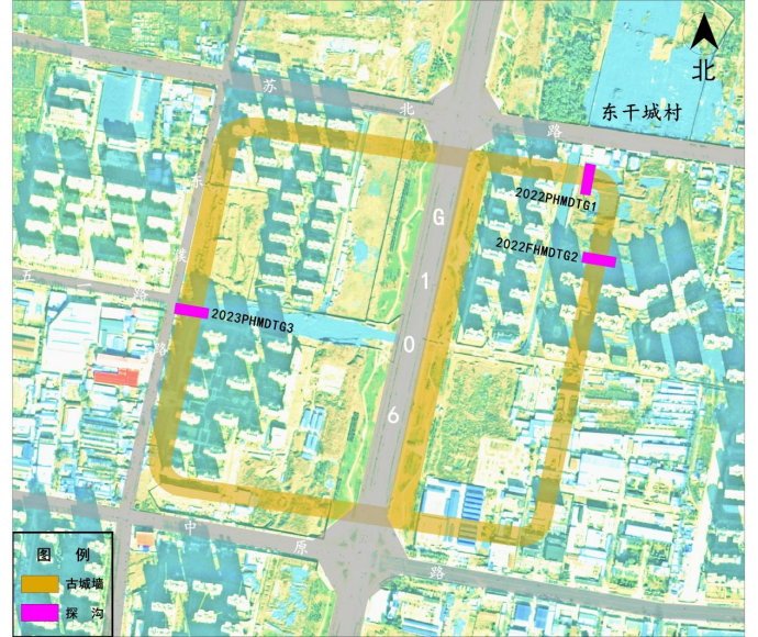 邓州古城遗址F2、L2、F3全景图(上为西)