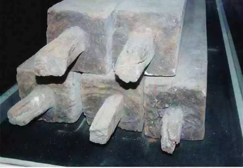 在一号大墓主棺棺顶,考古队员还发现了一些奇怪的玉石残片,这些残片竟然拼凑出了一双长约33 cm的玉石鞋底,其为东西向放置,鞋底下方是一片鲜红的朱砂。石鞋的出现又使考古队员们陷入了思考,韩队长当时提出了一个对石鞋的简易说法,他认为石鞋象征着天子一步步征服六国的无穷想象,后来根据专家的分析,这双陈设于椁盖上方的玉石鞋底竟然是一种“符节”玉器。所谓“符节”,就是古代派遣使者或调兵时当作凭证的东西,象征着征伐异国、保卫疆域的权力。虽然手持鞋底调动兵力在今天看来有点不太严肃,但可以认定大墓的主人必是秦国国君无疑,但是是哪位君王却无法定论。