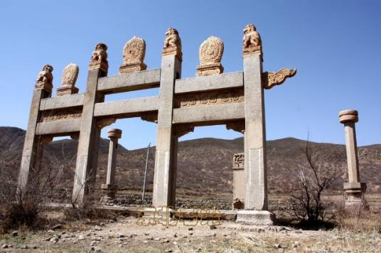 和硕端静公主墓华表顶上各有一麒麟,麒麟移至喀喇沁亲王府博物馆。