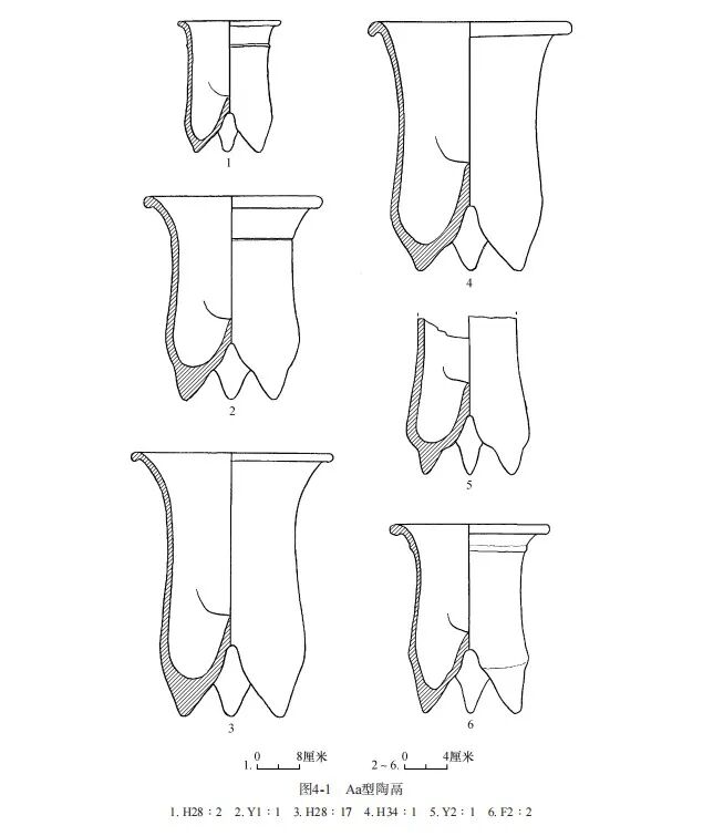 小塘山遗址遗迹大多开口于第1层下,地层简单,叠压打破关系较少。出土的陶器器形、纹饰等也无明显变化,因此推测小塘山遗址居住时间较短,应属于同一期文化遗存。小塘山遗址发现的石砌房屋建筑、灰坑(窖穴)、“马面”遗迹在赤峰市松山区三座店石城址和上机房营子石城址都有见到,且形制基本相同。小塘山遗址出土的筒形鬲(H28∶2)与松山区三座店石城址的鬲(H35②∶1)相同,甗(F15∶2)与上机房营子石城址同类器甗(T0310③∶5)的形制相近,故该遗址年代应与以松山区三座店石城址鬲(H35②∶1)及上机房营子石城址甗(T0310③∶5)为代表的单位年代相当。