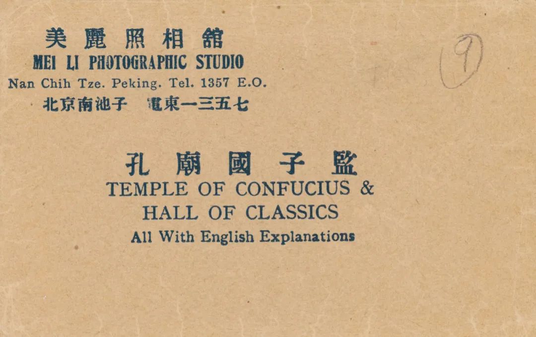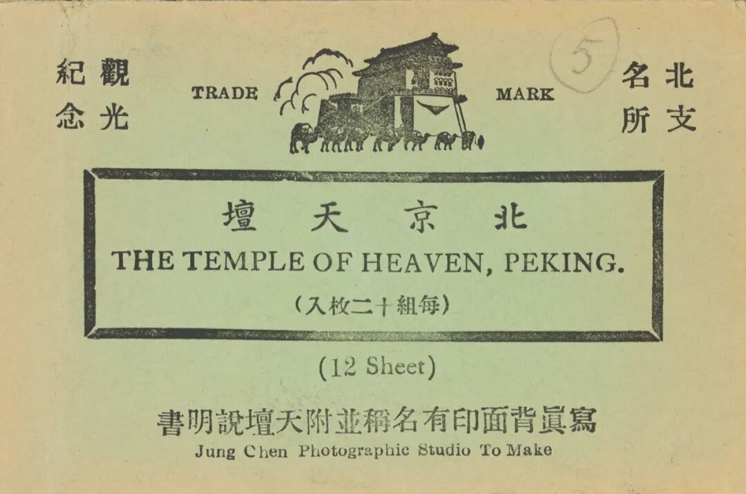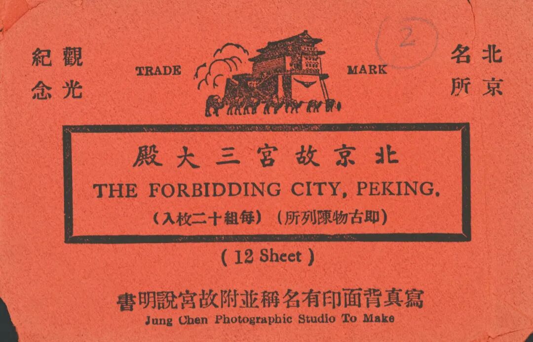 《北京名所》为北京南池子美丽照相馆拍摄的商业风景照片,约拍摄于1935年左右。此本现藏于澳大利亚国家图书馆,全套共九册,现存八册内容(每册十二幅),共含照片96幅,其中册六内容遗缺。照片拍摄地有:北京街市、故宫三大殿、北海、中南海、天坛、万寿山、煤山、孔庙国子监,照片背面印有名称并附说明。