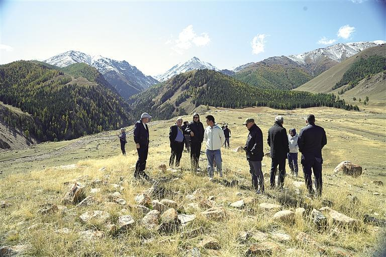 中亚考古学者考察巴里坤哈萨克自治县红山口遗址(资料照片)。