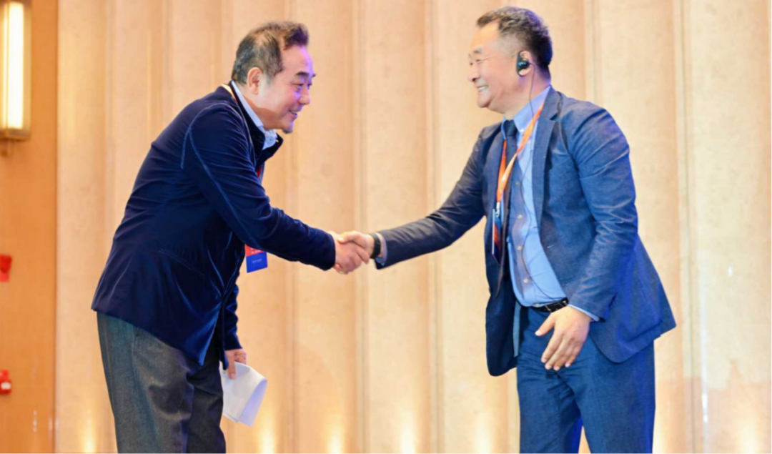 现任会长杜晓帆与新任会长金奎虎握手交接