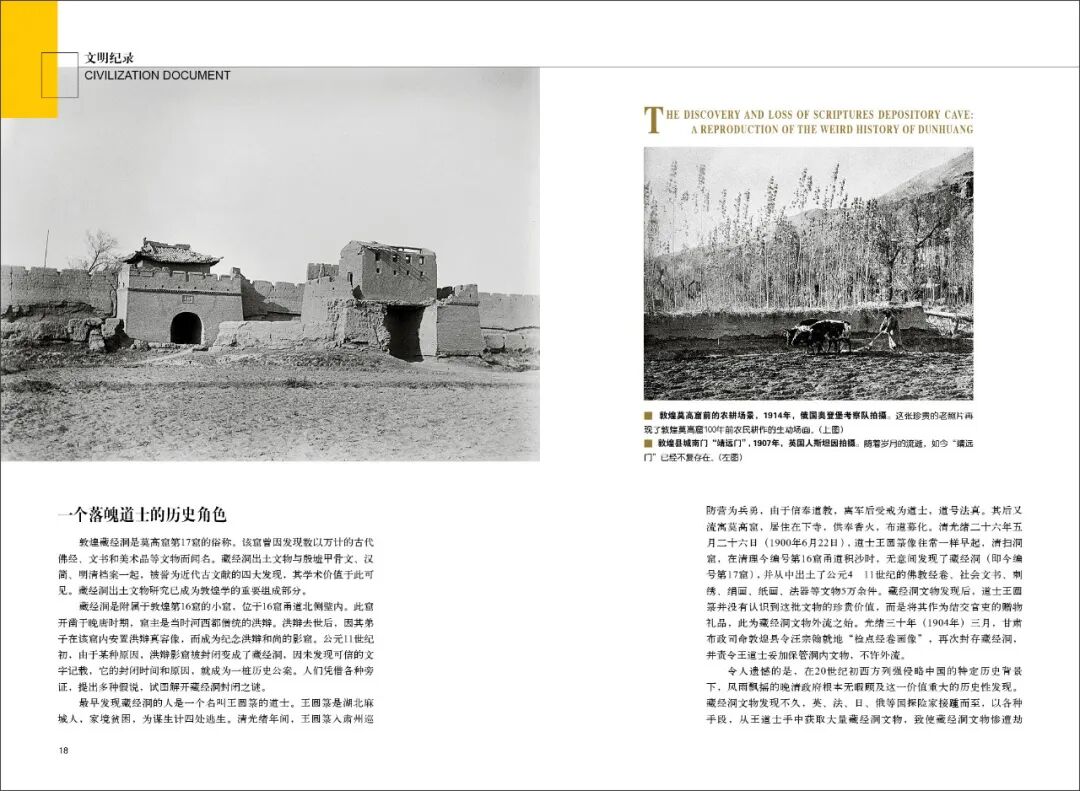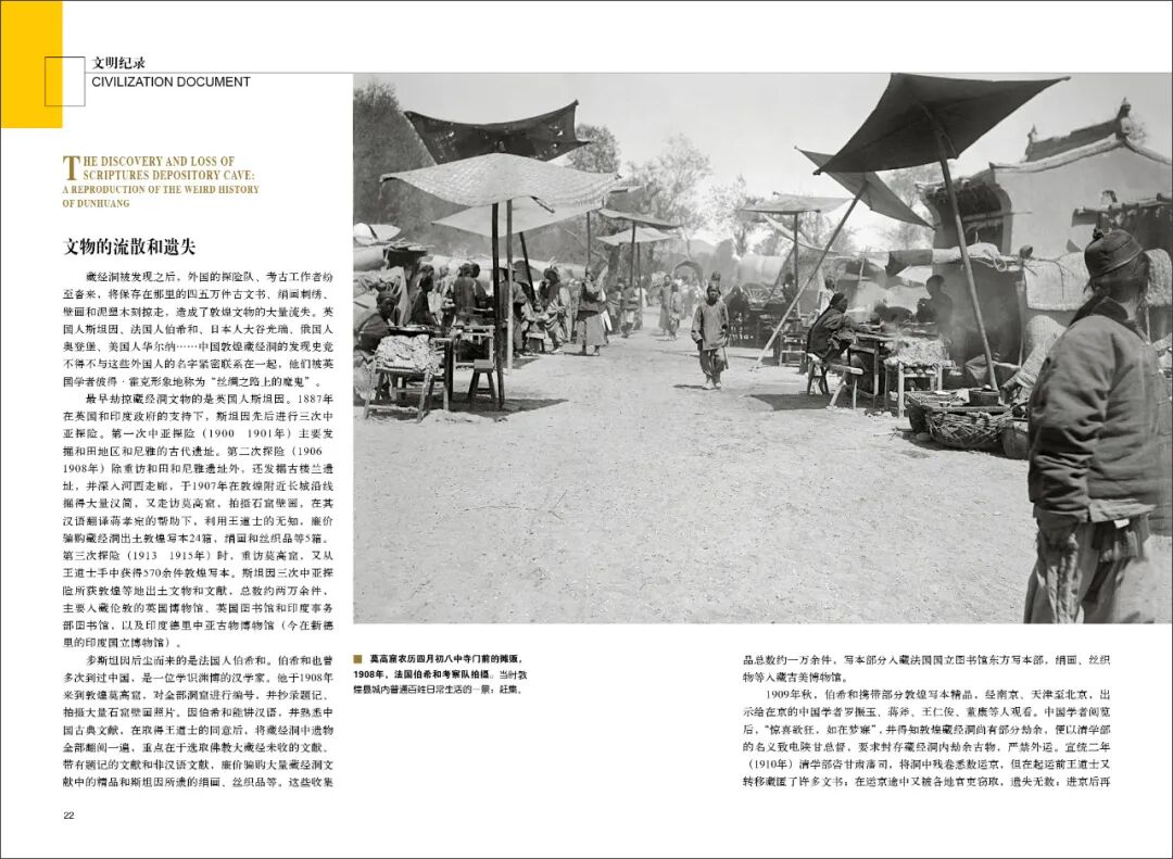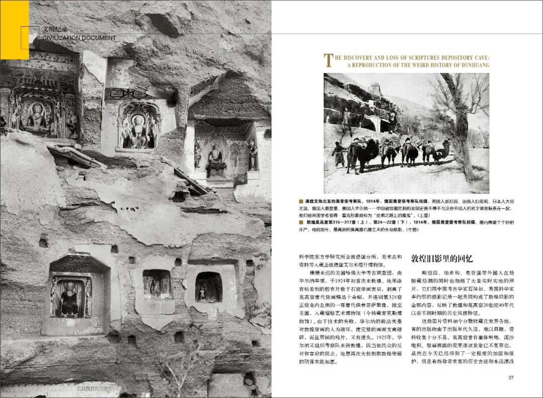 历史古迹的永远遗失彰显了敦煌旧影的弥足珍贵,这些图片再现了丝绸之路上中西文化交流的历史盛况,同时也为一个民族本已深重的苦难史和屈辱史再添悲情。当我们重新审视这些发黄的老照片,如同隔着漫漫黄沙遥望敦煌,仍然能够深刻感受到20世纪上半叶那段沧桑历史,并从中获得警示和力量。