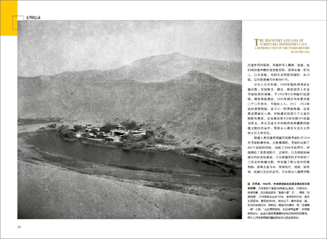 斯坦因、伯希和、奥登堡等外国人在劫掠藏经洞的同时也拍摄了大量实时实地的照片,它们同中国考古学家石璋如、英国科学家李约瑟的摄影记录一起共同构成了敦煌旧影的全部内容,反映了敦煌和莫高窟20世纪40年代以前不同时期的历史风貌特征。