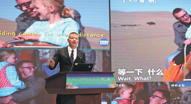 "We conduct real-time monitoring of cultural heritage and its surrounding area with advanced technology and implement ecological restoration projects to achieve the harmonious coexistence of cultural heritage and the environment," said Dunhuang Mayor Zhu Jianjun in a speech at the 2025 "Global Mayors Dialogue ・ Dunhuang", held in the city from Saturday to Monday.
