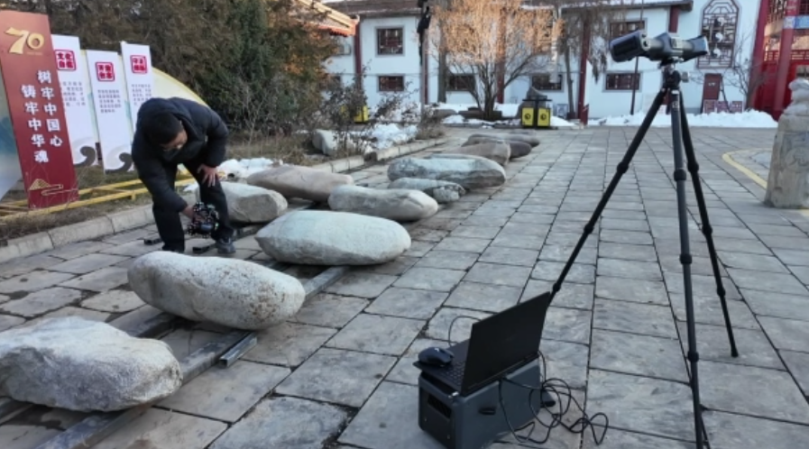 △工作人员通过三维激光扫描对草原石人进行数字建模 段悦摄