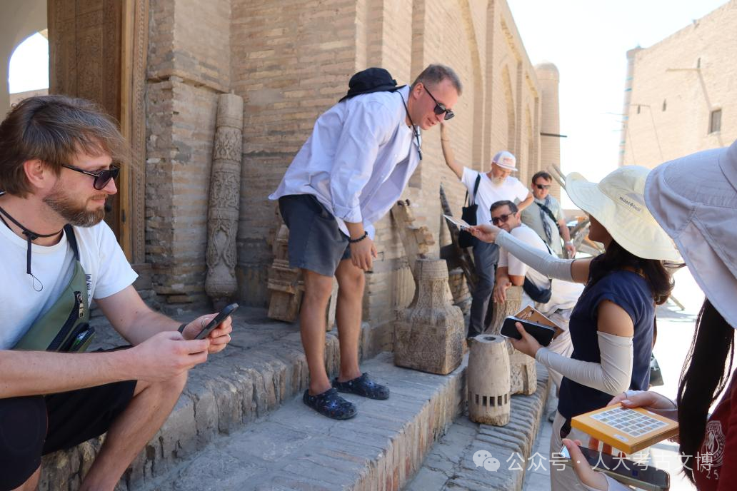在阿卡察可汗·卡拉遗址工作和生活期间,人大师生的每一步探索,都离不开乌兹别克斯坦卡拉卡尔帕克斯坦人文研究所团队毫无保留的支持与帮助。这份跨越国界的情谊,如同沙漠里的清泉,为整个考古工作注入了温暖而坚实的力量。还记得刚抵达遗址时,面对广袤沙地上的探方、复杂的地层堆积,乌方学者针对中亚沙漠地区特殊的气候与条件,分享了多年积累的田野发掘技巧。并邀请人大师生前往参观其团队所发掘的重要遗址,使人大团队能够快速了解当地的遗址特征及田野实践方法。