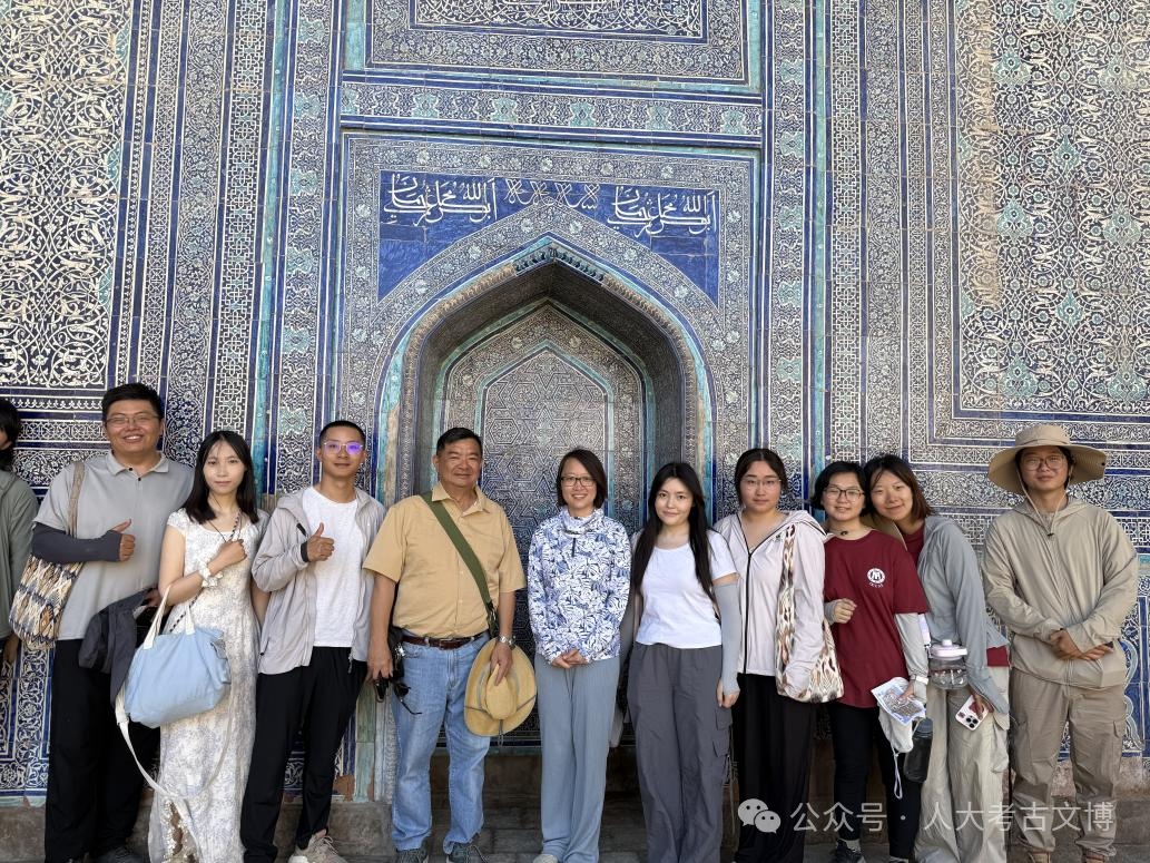 此外,人大师生还前往花剌子模地区著名世界文化遗产——希瓦古城进行调研。在这里,人大师生和来自世界各地的游客真诚交谈,每一次思维的碰撞、每一段故事的聆听,都是视野的开阔与能力的锤炼。当一行人走进由中国文化遗产研究院援建的阿米尔·图拉经学院时,对丝绸之路文化遗产的生命力有了切身的感悟。历史学院学生田心月写下:“希瓦从未沦为标本。其古老的文化血脉,依然在工匠的雕刀与织机的梭影间奔涌不息。这座古城的灵魂,不仅镌刻于经学院精美的釉砖之上,更弥漫在巴扎的喧嚣与寻常人家的炊烟里。”历经岁月沧桑的古老城墙,与融入现代保护理念的援建成果交相辉映,丝路文明多元、包容的独特魅力在此刻展现得淋漓尽致,更让全体队员坚定了以考古研究为纽带、守护和传承丝路文明的信念与决心。