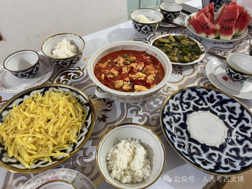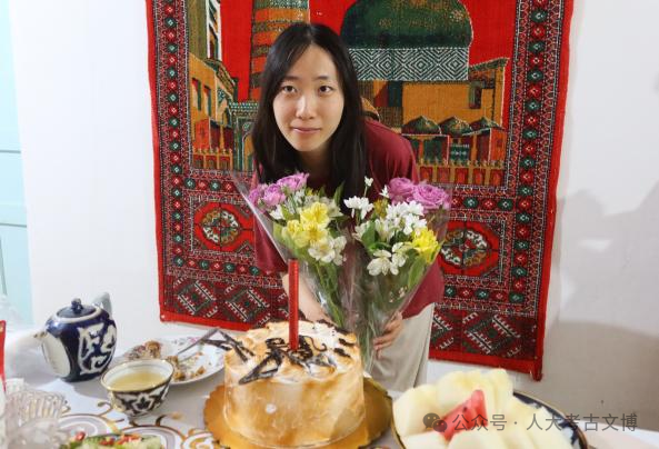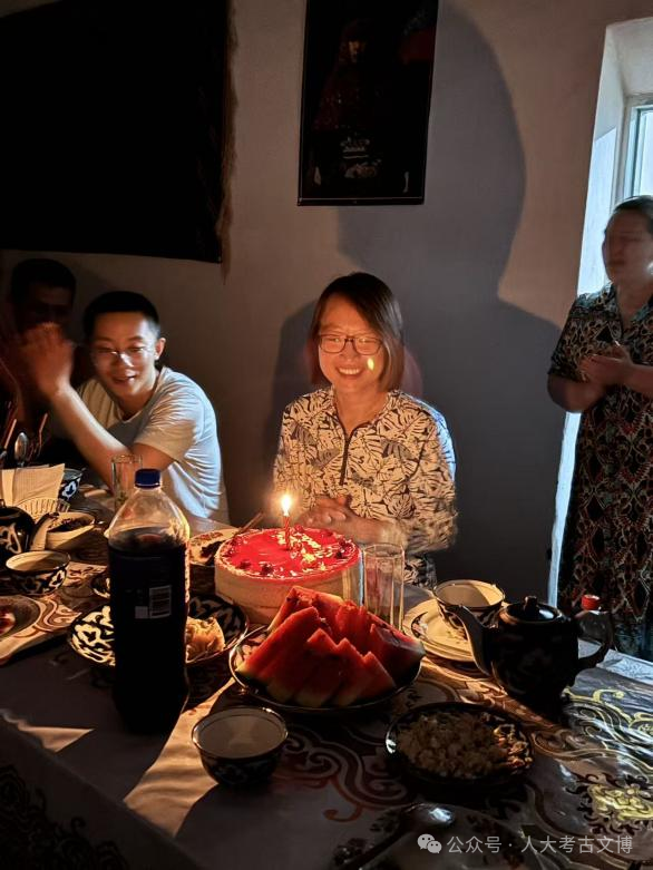 发掘过程中,中乌联合考古队同吃同住,共同度过多个意义特殊的时刻。从8月到9月,共有3位人大师生在乌兹别克斯坦迎来了自己在异国他乡的生日,收到生日礼物的冯鹏锦同学表示:“即使身处国外,也能在老师、同学与乌方合作者们的陪伴下度过这样温暖的生日,使我既开心、又激动。我会珍惜这难忘的幸福,这也是考古带给我的宝贵回忆”。在教师节到来之际,乌方人员也和同学们一起贴心为老师准备了鲜花与美食。节假日时,中国队员们亲自下厨制作中餐,同乌方考古队员分享这份来自家乡的美味。