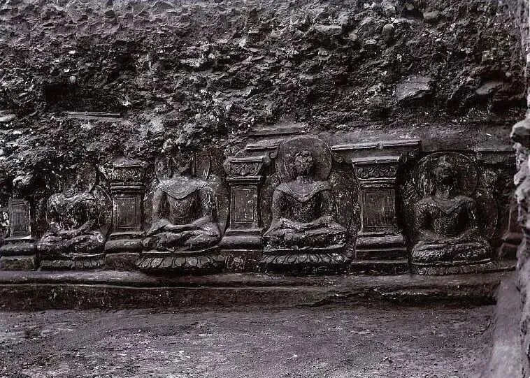 ▲迦腻色迦大塔塔基细部照片,装饰着禅定的佛陀