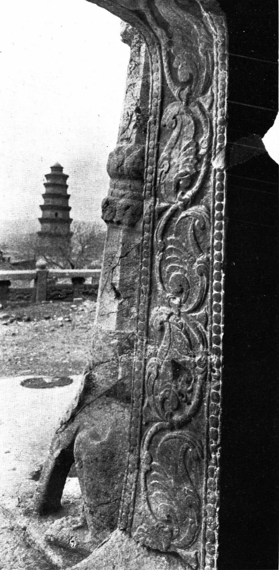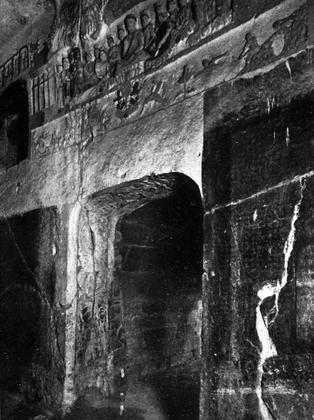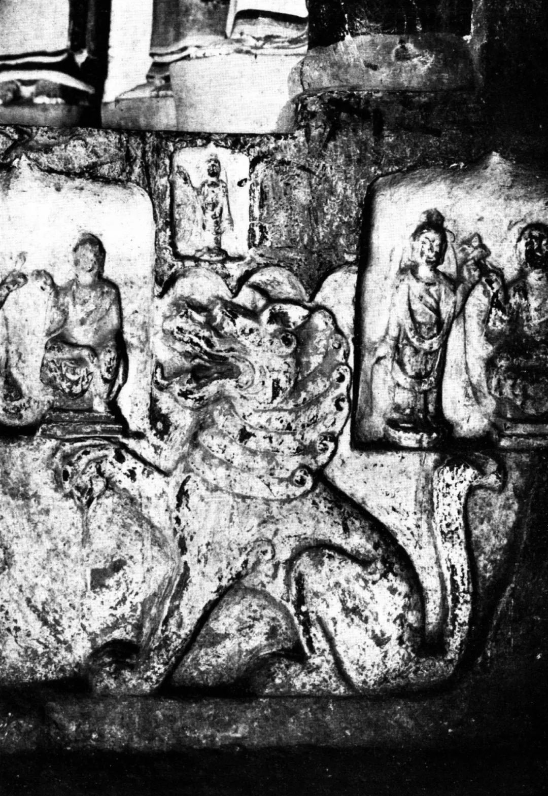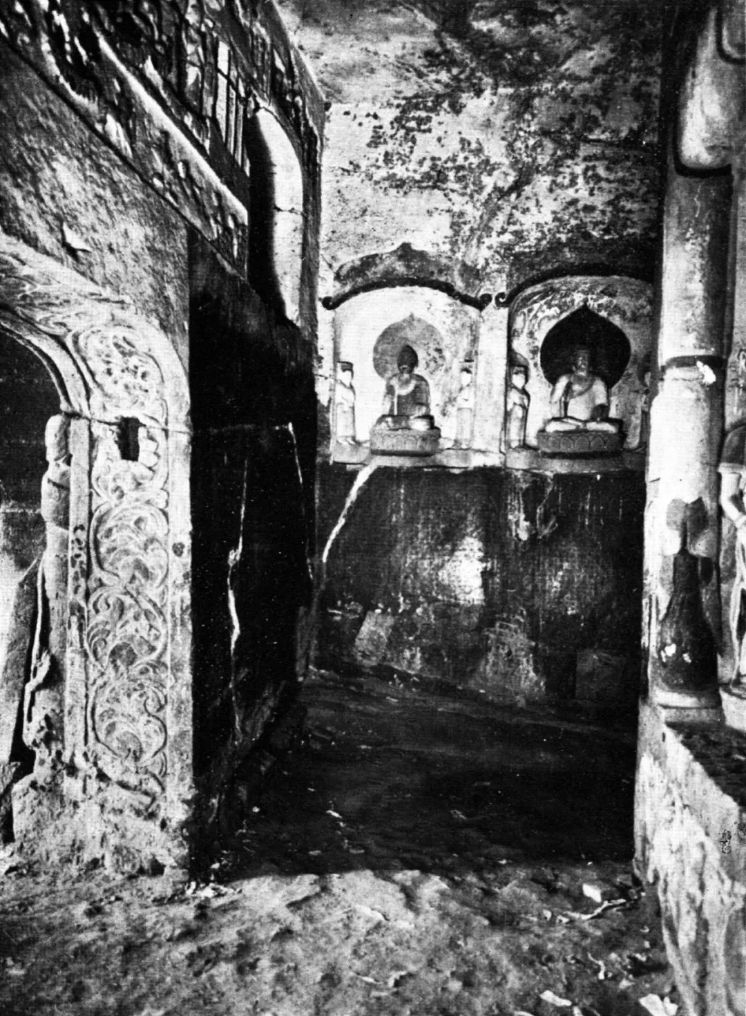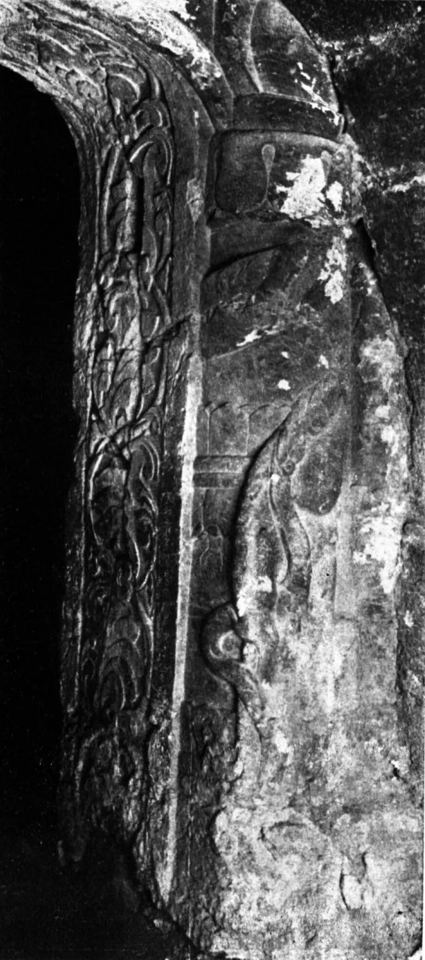 第一窟洞口拱门侧壁唐草纹饰及龙柱
