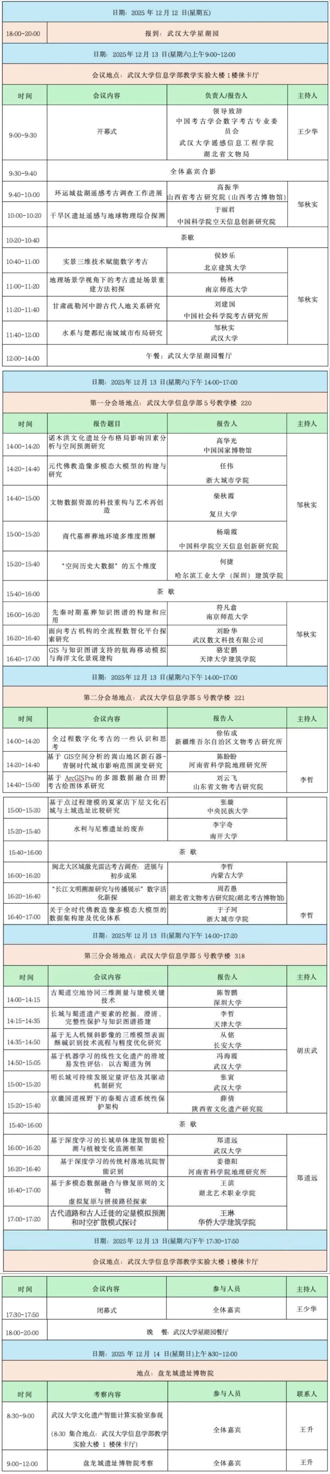 由中国考古学会数字考古专业委员会主办,武汉大学遥感信息工程学院、武汉大学文化遗产智能计算实验室、武汉大学历史学院、湖北省文物考古研究院承办的“数字考古2025年学术年会”将于2025年12月12日至12月14日在武汉大学举办。