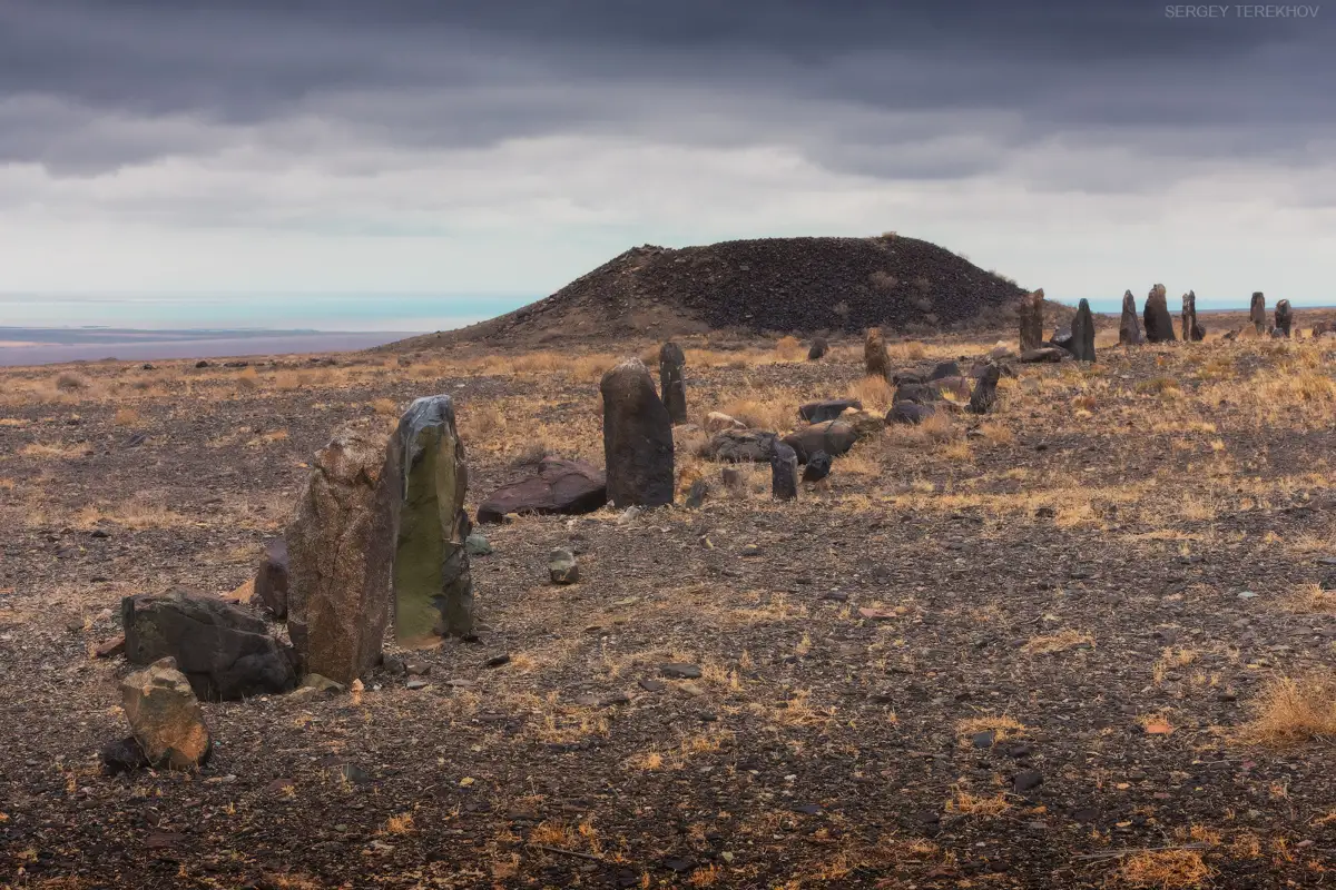 从外表看,这些陵墓好像一些高达20多米的普通山丘。科学家们发现在这里面躺着约公元前7世纪-公元前3世纪萨克人(塞人)族长们的遗骸。刻有动物图像的45块完整巨石,沿古墓一字排开。