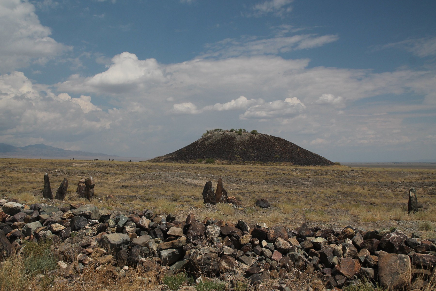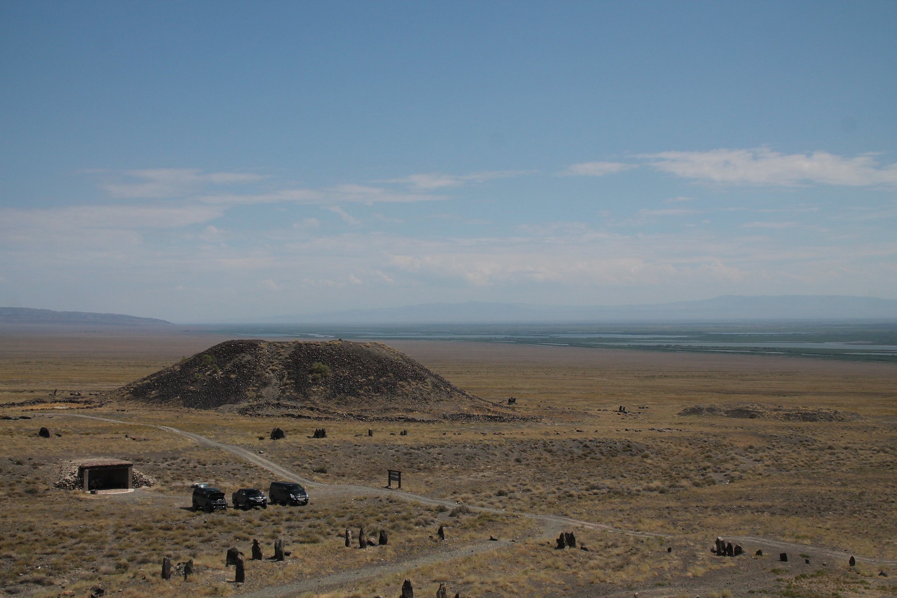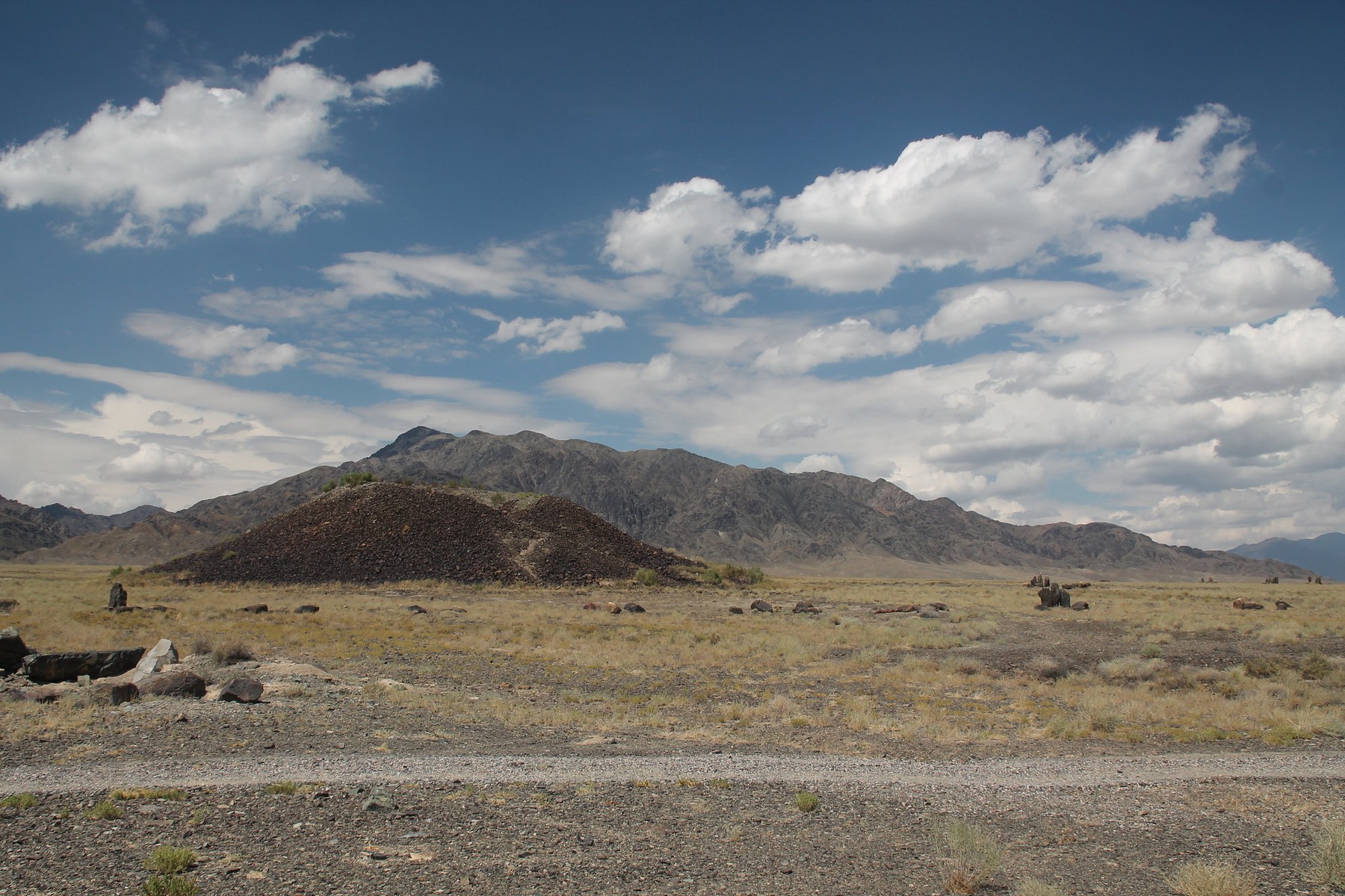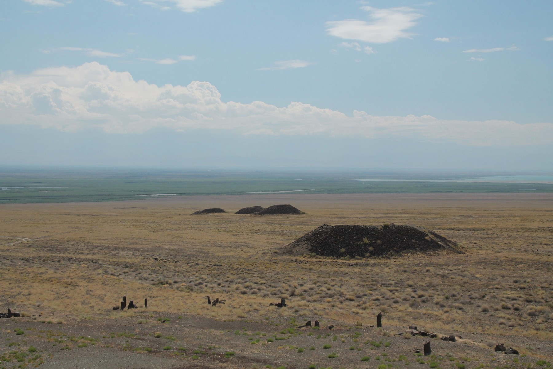 该遗址拥有巨大的墓葬土丘,其中最大的土丘高 17 米,直径 104 米。这些土丘是公元前 7 世纪至公元前 3 世纪萨卡酋长和军事领导人的最后安息之地。从远处看,这些石头建造的土丘类似于帐篷。该地区总共发现了 31 个土丘——21 个用石头覆盖,10 个用砾石和泥土建造。