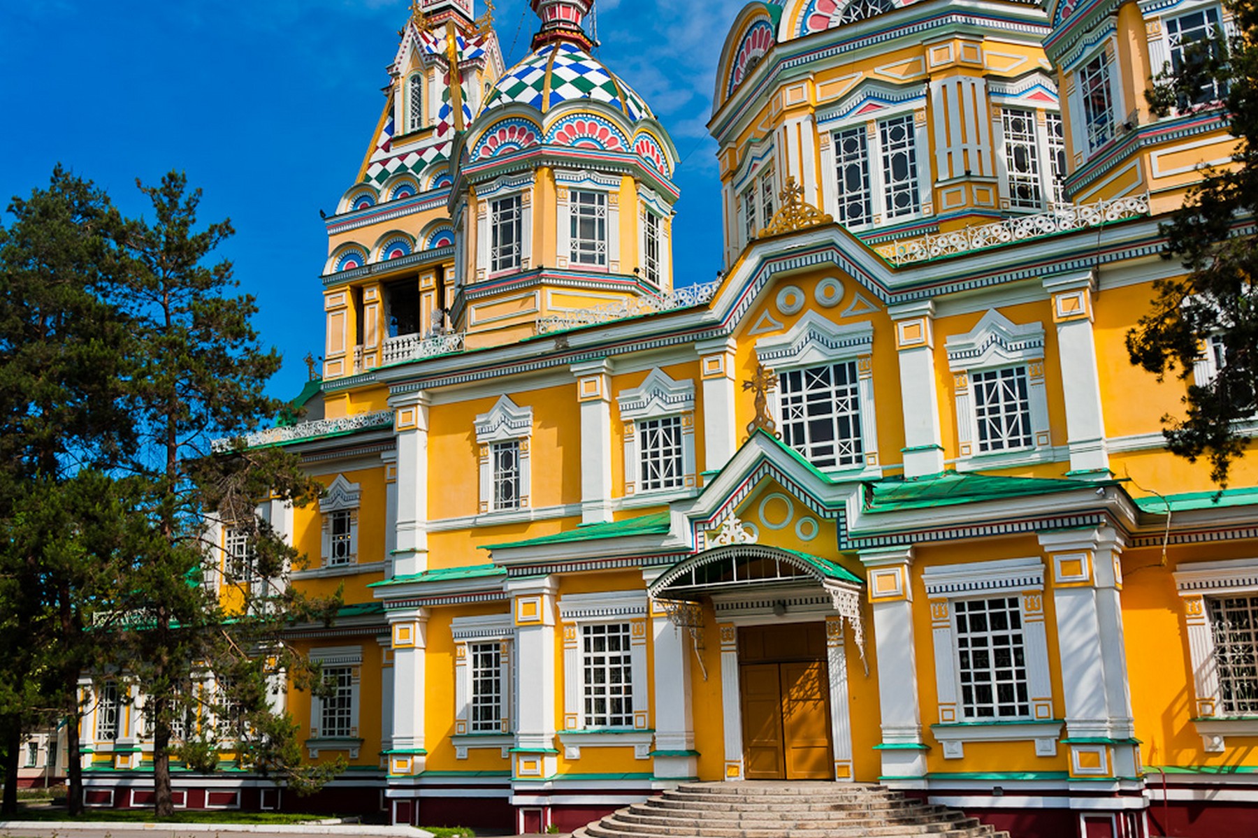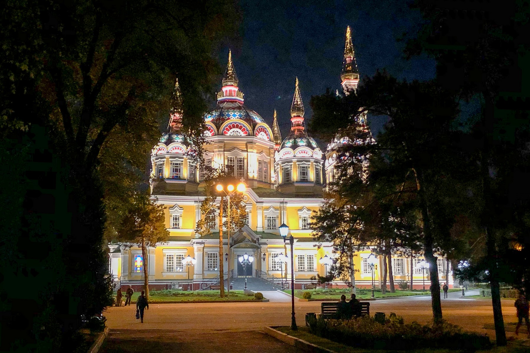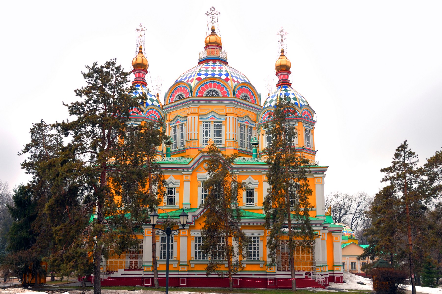 升天大教堂是阿拉木图和阿斯塔纳教区两座主要大教堂之一,属于俄罗斯东正教,位于潘菲洛夫二十八卫公园内。它曾被称为土耳其斯坦大教堂,如今已成为一座独特的木制建筑工艺的纪念碑和抗震建筑的典范,是阿拉木图最迷人的地标之一。