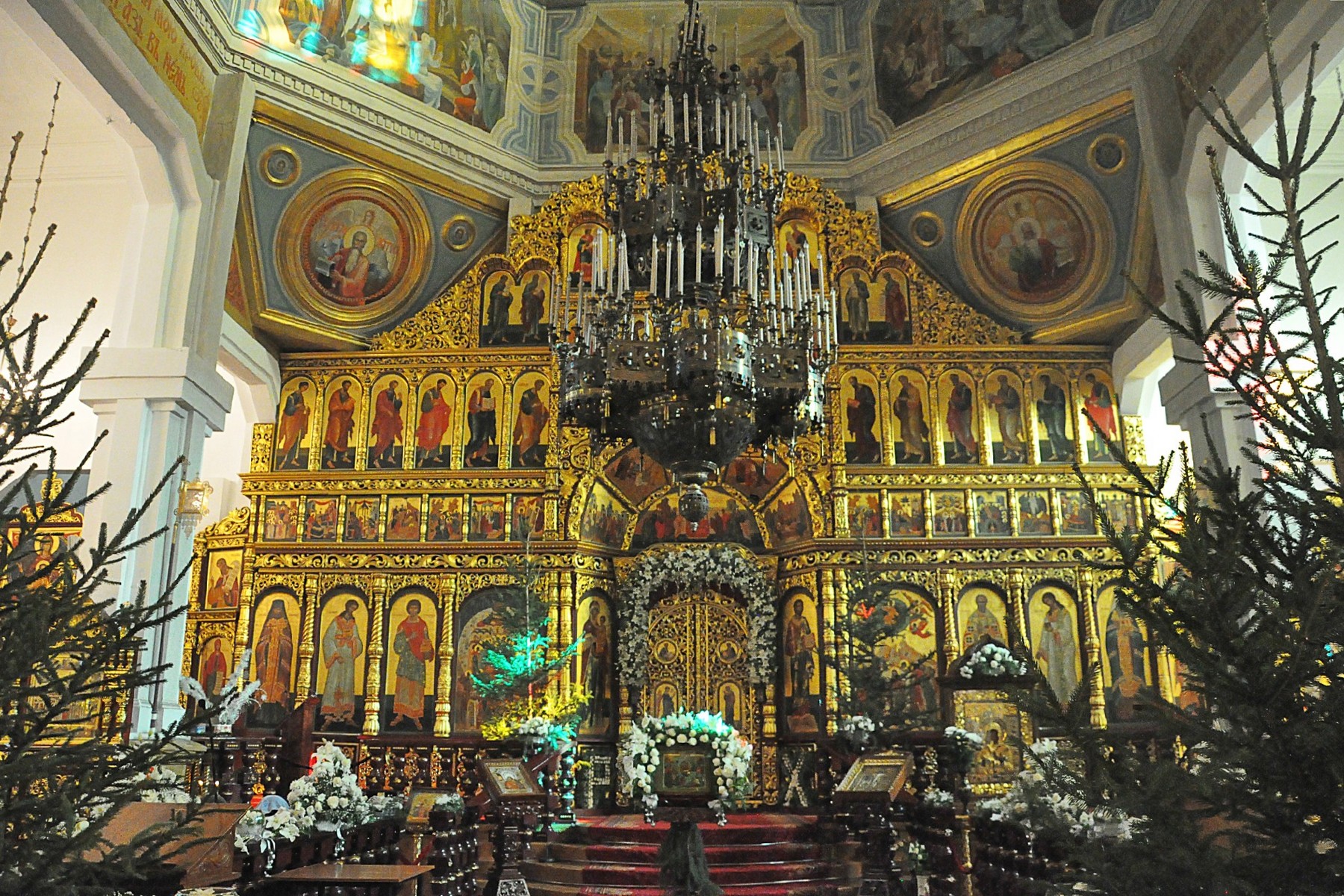 大教堂不仅外观美丽,内部也富丽堂皇。内部有宽敞豪华的大厅、华丽的吊灯和令人惊叹的圣像。最引人注目的特色之一是圣像壁,由艺术家 N. Khludov 制作,工艺精湛,艺术意义非凡,值得特别关注。
