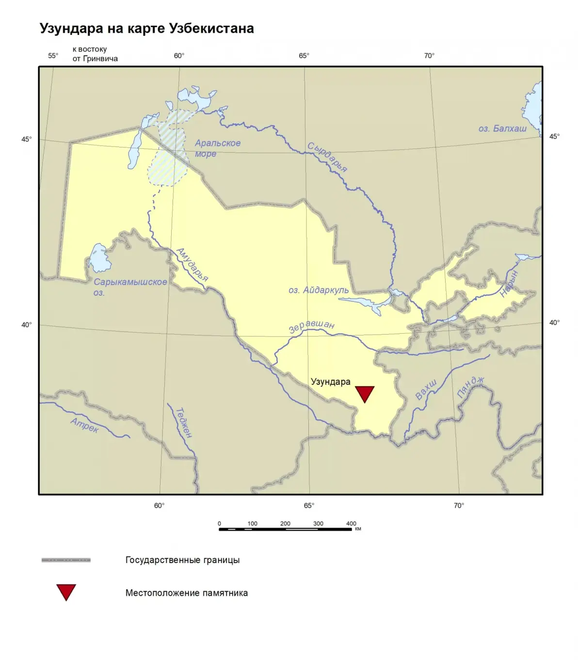 1991年,在古大夏边境发现了奇特的堡垒遗址。它位于现代乌兹别克斯坦境内,海拔1700米。由于苏联解体,这座遗址很长一段时间都没有被探索——考古学家直到 2013 年才得以返回乌尊达拉。在过去的数年里,俄罗斯科学院考古研究所(IA RAS)和乌兹别克斯坦科学院艺术史研究所的考察队彻底探索了乌尊达拉的一部分——城堡,面积约1700 m 2。