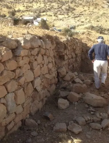 乌兹别克斯坦-俄罗斯联合探险队完成了对苏尔坎达里亚地区拜松地区乌尊达拉堡垒的第四季研究。图中E.V. Rtveladze 院士经过了城墙遗迹