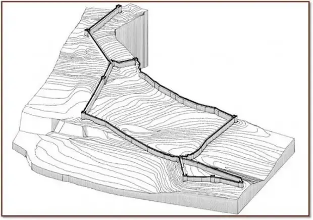 从上方看,乌尊达拉几乎像一个菱形,其一个角与城堡的三角形相邻。据考古学家称,这座堡垒是一种边境前哨,保护巴克特里亚免受游牧民族的侵害。