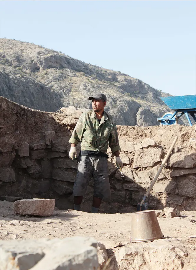 发掘现场的工人,主要来自附近 Sairob 村和 Gagarin 村